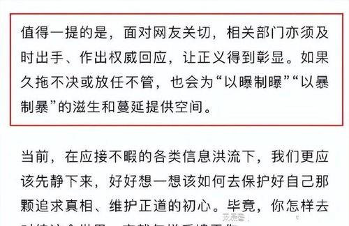 此外,还有网友指出,这起事件暴露了我国网络环境的混乱。在互联网时代,我们每个人都应该提高自己的法律意识,遵守网络道德,共同营造一个和谐的网络环境。